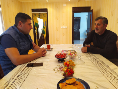 Qəsəbəyə çatar-çatmaz qəhrəmanımıza zəng vururam ki, ünvanını istinad versin. Telefonda bizimlə danışa-danışa səsi eşidilir. Asim payız gəlsə də, havanın günəşli olmağından fürsətlənib həyətində iş görür. Pir olmuş əlindəki işi bir kənara qoyur. “Siz gəlin, mən özüm yola çıxıb sizi qarşılayacam” deyir. Qəsəbənin girişində söz verdiyi kimi, bizi özü qarşılayır. İllərin dostları kimi qucaqlaşıb görüşürük. Birlikdə yolun ətəyindən tutaraq üz tuturuq onun yaşadığı ünvana.